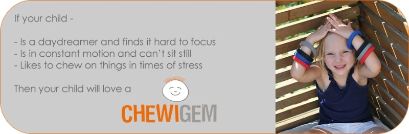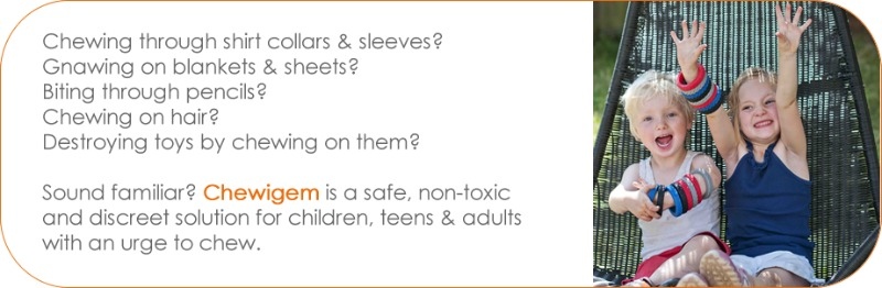It is widely recognized that many children with sensory needs find chewing a way of remaining calm during times of stress. Chewigem is designed for the mild to moderate chewer and is intended to sooth and comfort children through adults with any type of additional needs. Our products are made of FDA approved silicone and are lead, latex, BPA, PVC and phthalate free, allowing parents and caregivers the peace of mind of knowing that safety standards have been met. Our varying designs and colours allow there to be a special Chewigem for everyone. Due to the intended use of the product, wear and tear are expected and products should be checked routinely for damage. Discard and replace immediately once damaged.